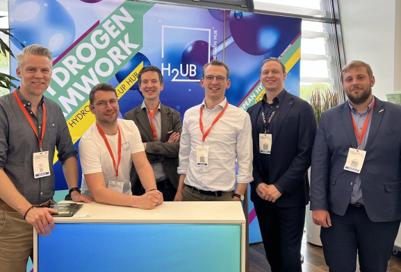 - Community get-together at the H2UB booth with Azure H2, ARTHUR, H2Pro, HY.AIR Energy GmbH and Southern Lights – many participants came by to learn more about the innovative power of H2 start-ups